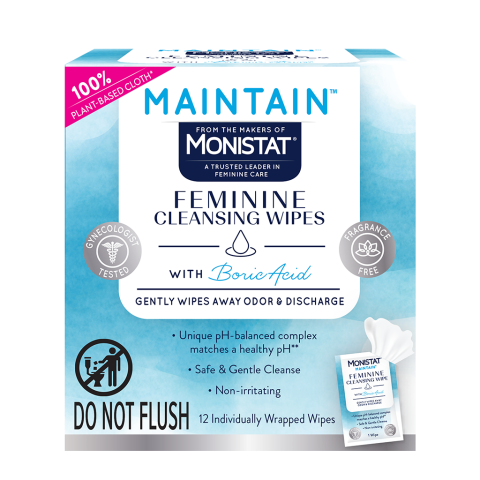 Gently wipes away odor & dischargeMonistat Maintain Feminine Cleansing Wipes with Boric Acid are gentle, fragrance-free wipes that remove odor and discharge without irritating sensitive skin. Perfect for gentle cleansing, these feminine wipes are plant-based* and contain a unique pH-balanced complex that matches a healthy pH based upon the natural range of a woman’s external intimate area. These boric acid feminine wipes are not intended to treat a vaginal yeast infection.